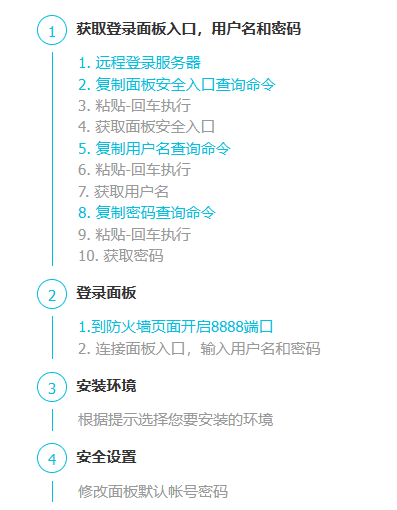 请记住你的宝塔面板的登陆账号和密码,之后有用。