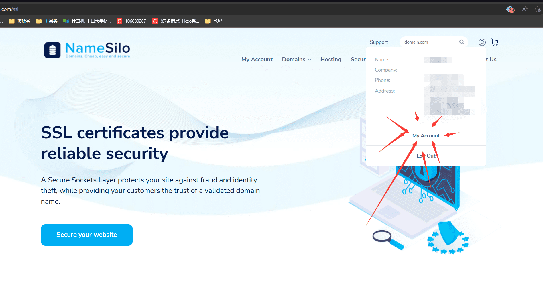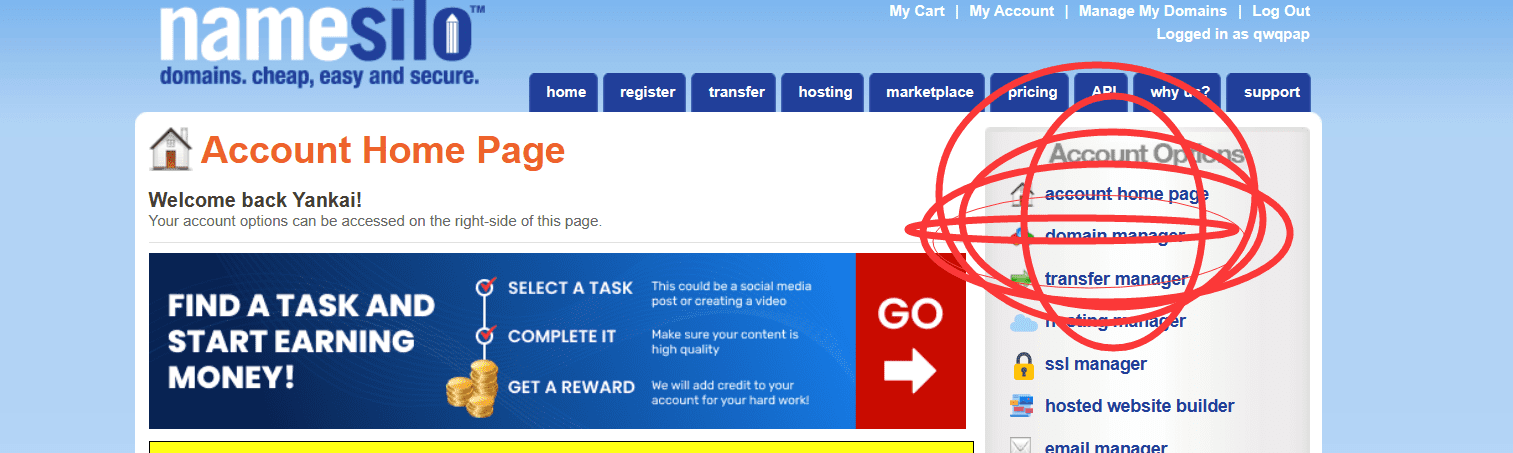 我们在‘www.namesilo.com/’这个网站购买域名