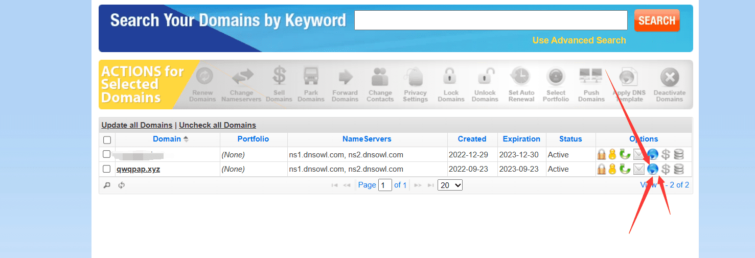 进去之后看到自己的域名了,选后面那个地球(确信
