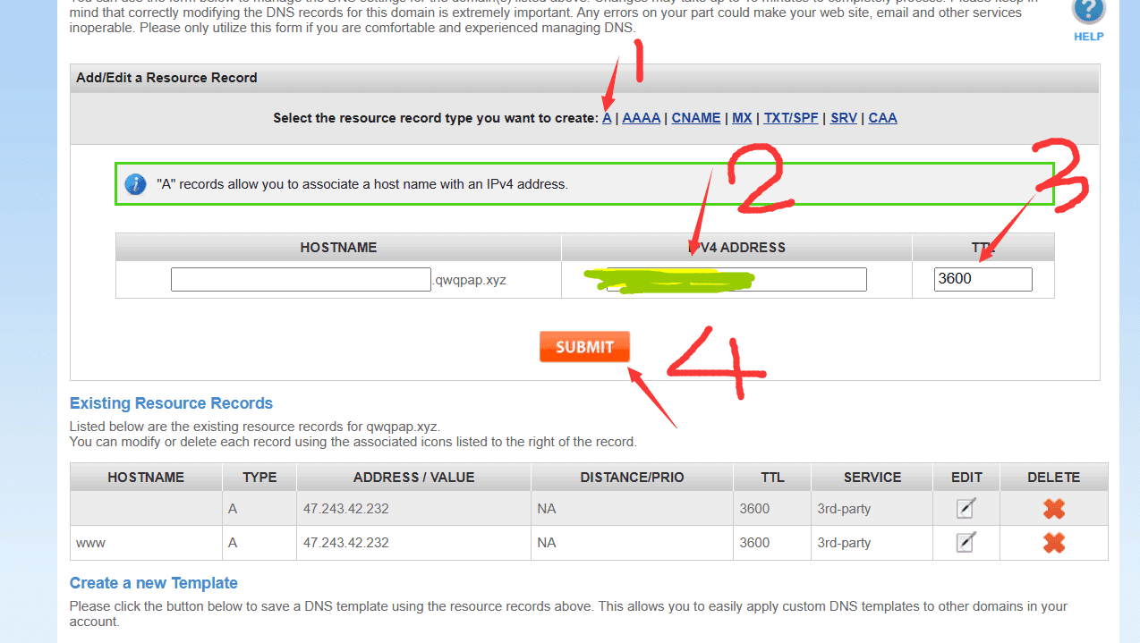 这样填写一次(绿色的就是网站的ip地址的地方,请填你自己的)