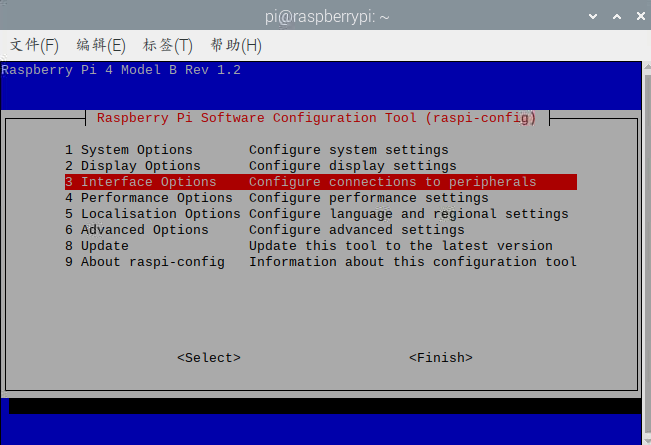 如果你使用的是图形桌面,非常好,直接在左上角首选项>Raspberry Pi Configuration>Interfaces 里面把i2c打开就可以