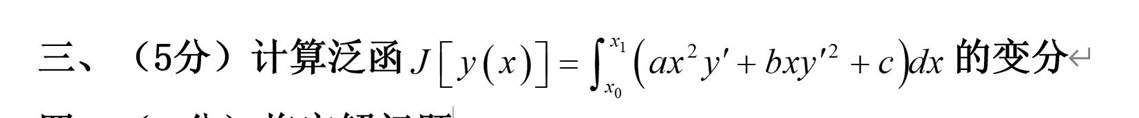 \delta J=\int_{x_0}^{x_1}(\frac{\partial F}{\partial y}\delta y +\frac{\partial F}{\partial y'}\delta y' ) dx所以只用把被积函数的偏导算出来 带进去,就可以下一步了