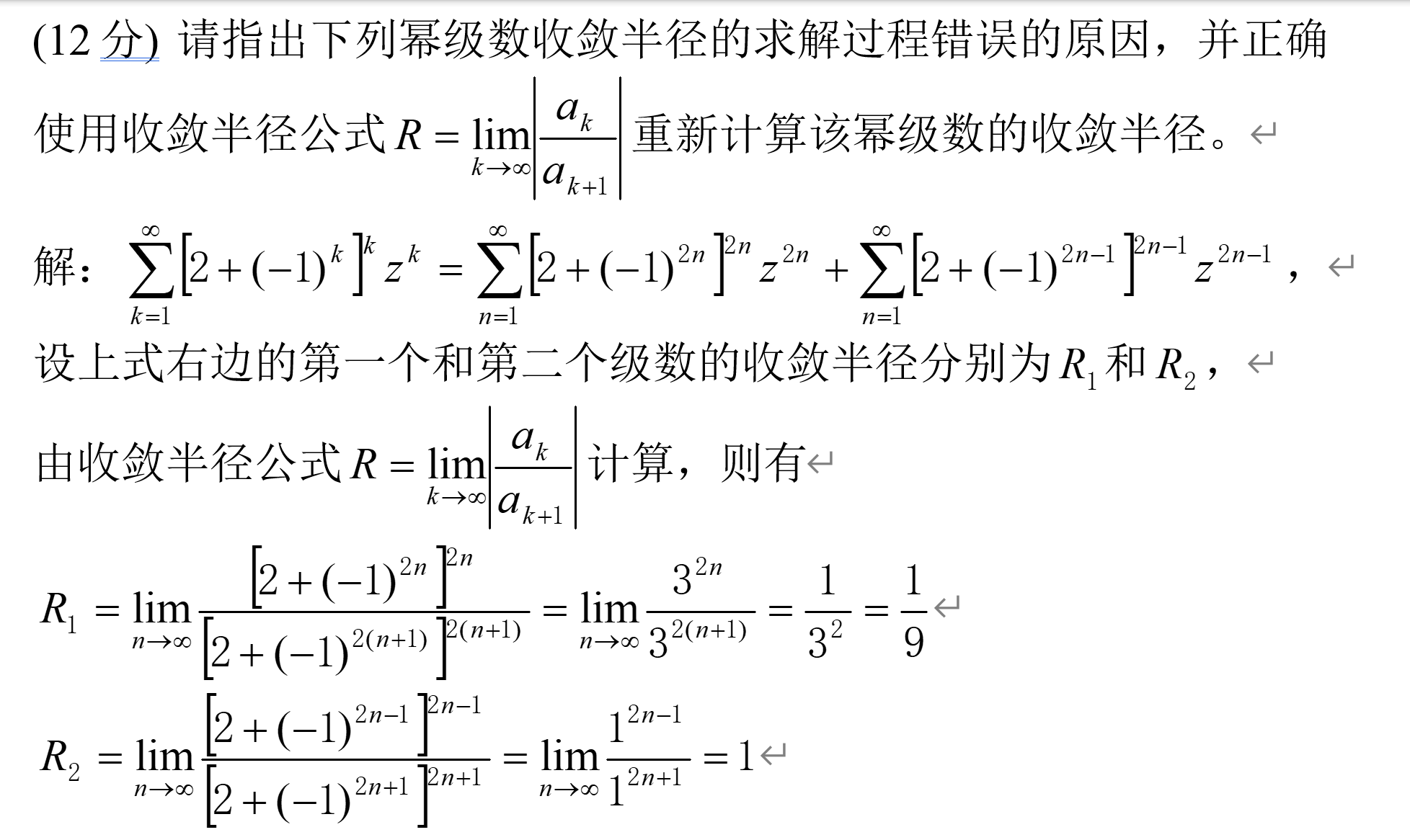 仔细观察发现这个题给收敛拆分成了奇数项和偶数项,然后求各自的收敛半径,那肯定是不太行。