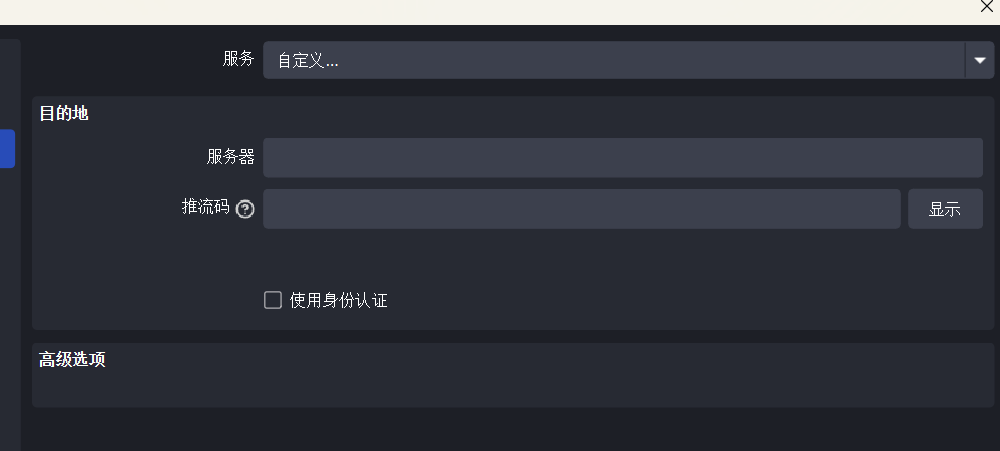 之后是设置推流码,通常在直播的平台会给你这个,如果你恰好决定用bilibili直播,你可以大大方方说陈睿你妈死了,因为现在好像不怎么提供推流码。